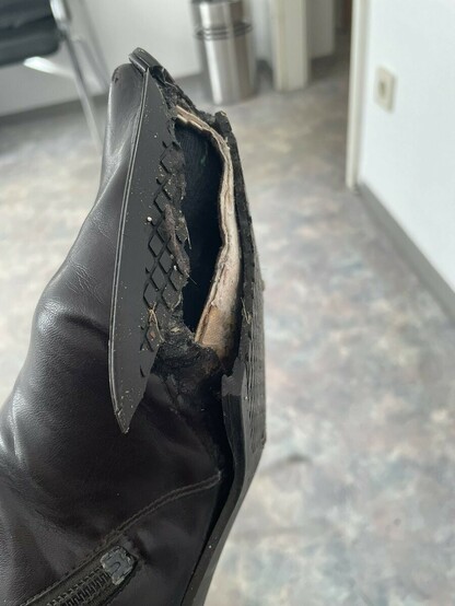 Sitze im Wartezimmer beim Arzt und ich glaub, mein Schuh hat sich gerade verabschiedet. Dabei ist der erst 20 Jahre alt 😭😭😭