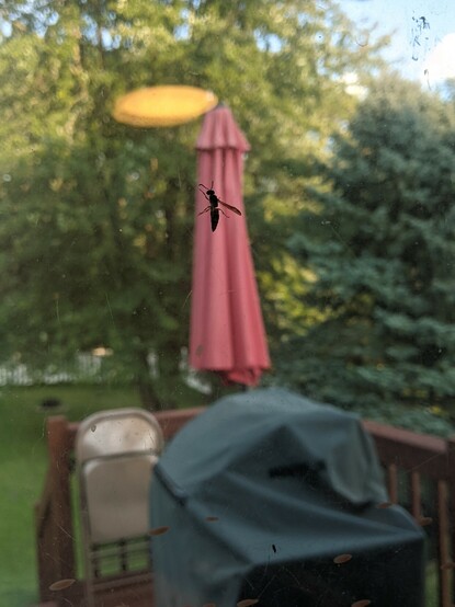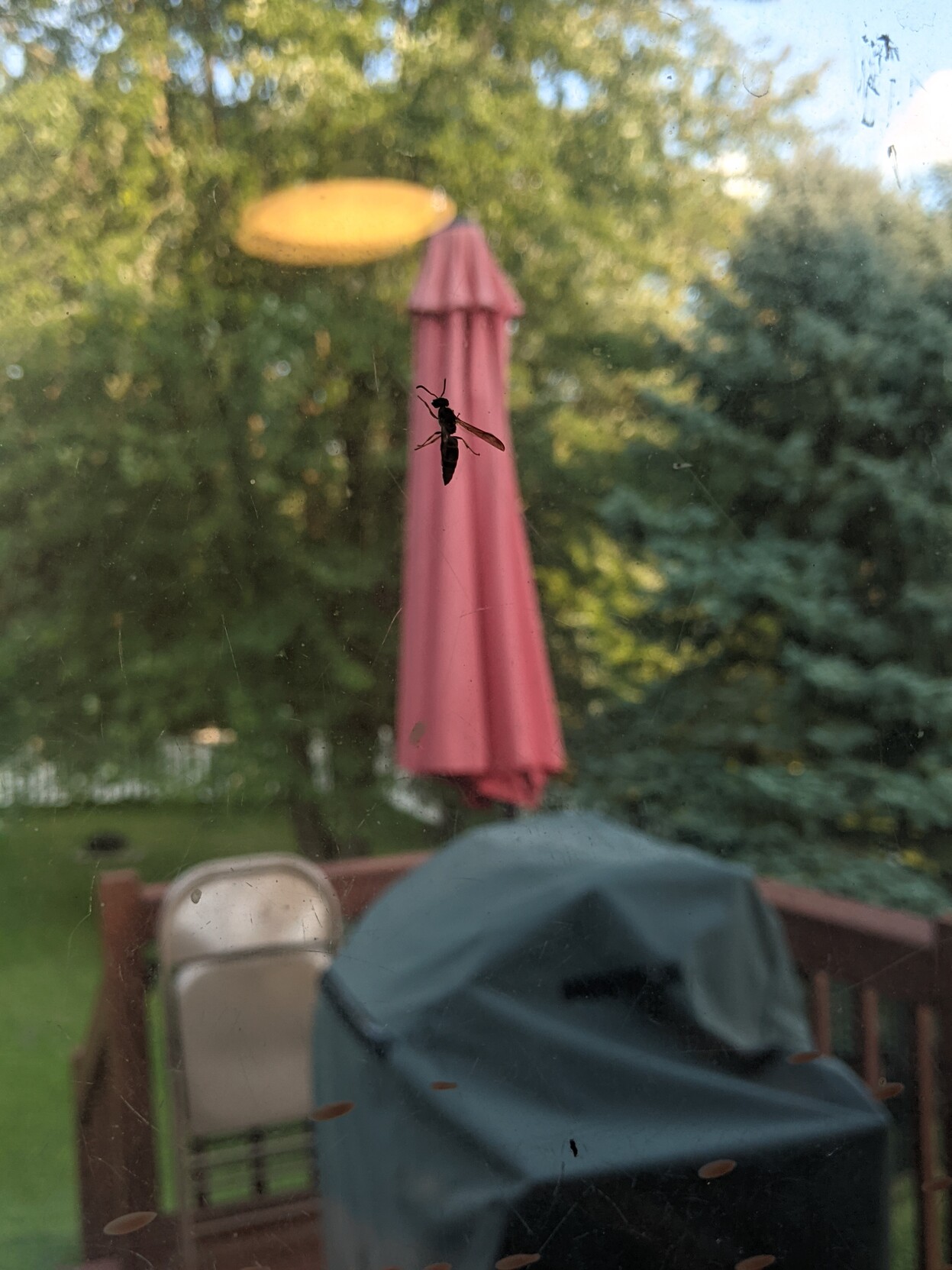 Nope. I managed to be there at the right time when a #wasp, carrying one of those sticks, flew into a small crack (marked by the red arrow). It was building a nest inside my door. The audacity!