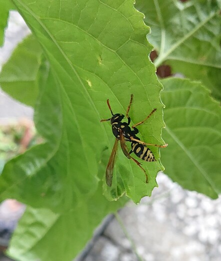 Found a few of those #wasps munching away at the leaves of my passion fruit plants. Wonder what kind of #wasp it is?
