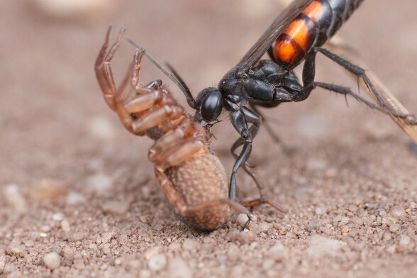 So without further ado, here's no. 1: a cool pompilid, dragging along a paralyzed spider to a burrow somewhere.
