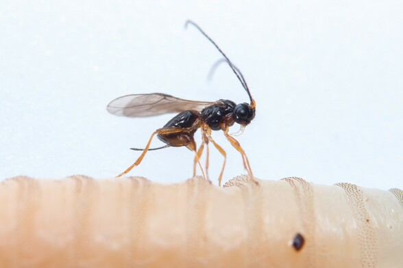 Here's no. 3 and 4 - after handling fly larvae to get a shot of this Aphaereta wasp parasitizing my fingers must have smelled quite appetizing to this confused wasp lady.