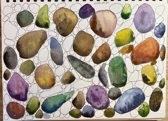 The pandemic and a move across the country put a serious kibosh on my artistic output but I’m feeling the itch again. As I don’t have the space to do the larger paintings I’m used to, I’m teaching myself watercolor painting. It’s hard! But fun and very helpful in not allowing me to endlessly revise my work. #watercolorpractice