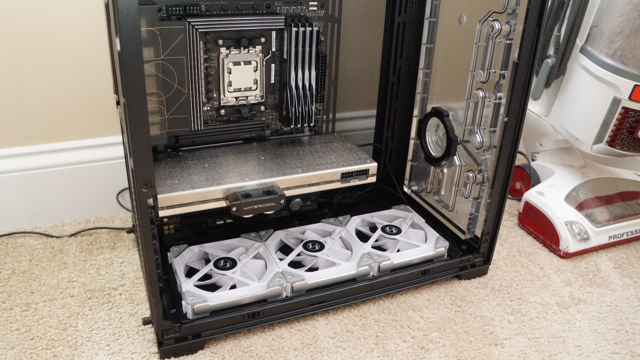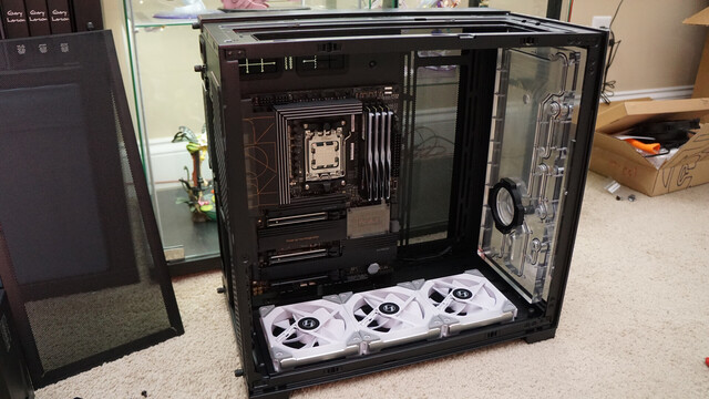 Watercooling build continues, got the Lian Li UNI FAN SL120s in and they're looking pretty good. Since the windows are tinted, it knocks the brightness down to the right levels. Also very, very easy to install. #watercooling #computer