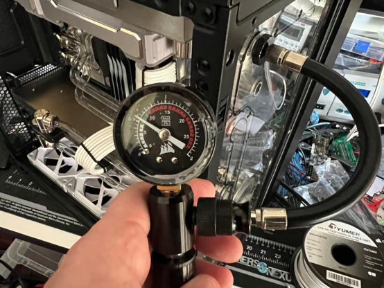You're in too deep when you're pressurizing your computer's cooling system to see if there are any leaks. Hopefully everything tests good so I can move on to putting the coolant in. #watercooling #computers