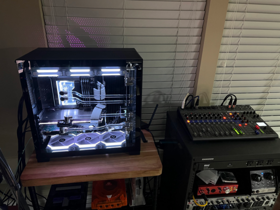 The loop is filled and I've got the pump cranked to 100% to get the air out of everything. The only real thing left is getting everything connected behind the computer and see what happens afterwards. #watercooling #computers