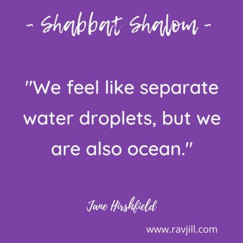 "We feel like separate water droplets, but we are also ocean." Jane Hirshfield #poetry #ShabbatShalom #mazeldon #WeAreOne