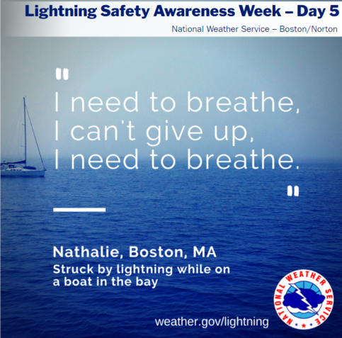 [Lightning Safety Awareness Week - Day 5] Nathalie survived, but boating and lightning can be a deadly combination. Check the forecast before you go out, and head to shore at the first sign of a storm. https://weather.gov/safety/lightning #WeatherReady