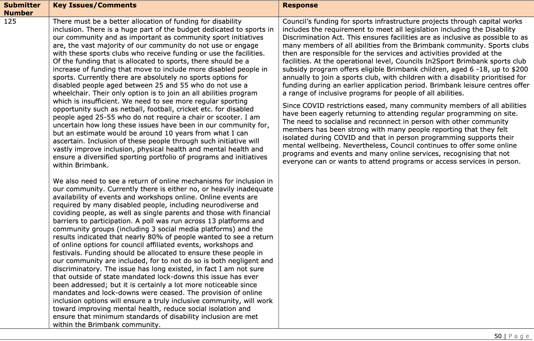 Brimbank City Council recently released the feedback from submissions to their draft budget.