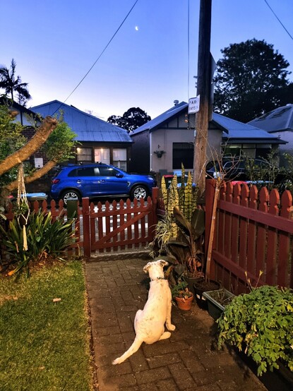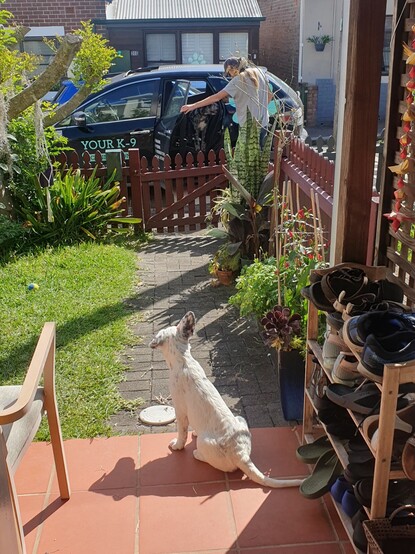 Gray watches Boof go with the dog walker. He's such a thoughtful little chap, with one ear up and one ear down.