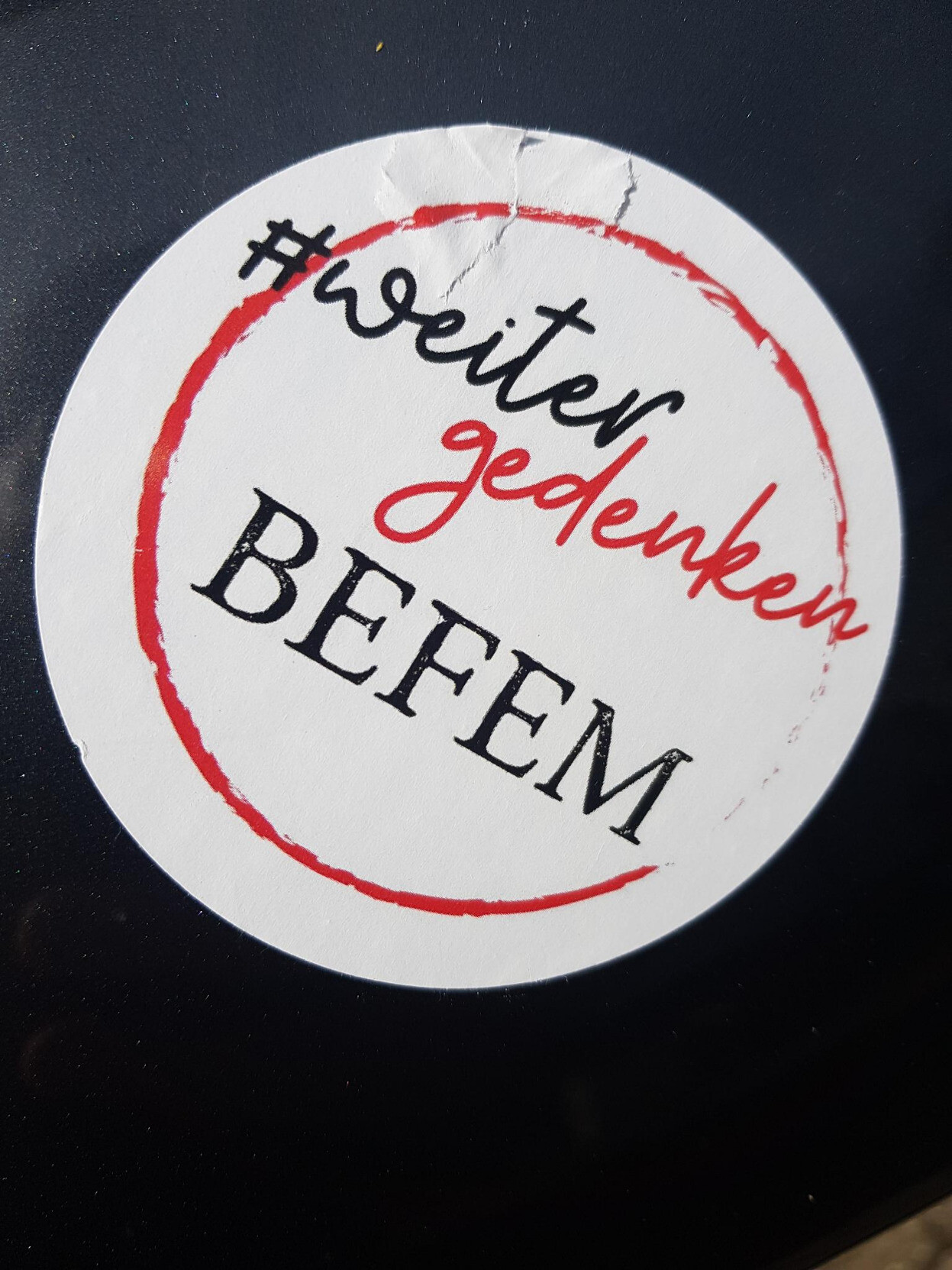 Das Projekt BEFEM mit dem Hashtag #weitergedenken mag eine sinnvolle und wichtige Studie darstellen. Wer mir aber einfach so ungefragt mitten in der Nacht einen Sticker des Projekts aufs Auto klebt, kann sicher nicht mit meiner Unterstützung dabei rechnen. 😠
