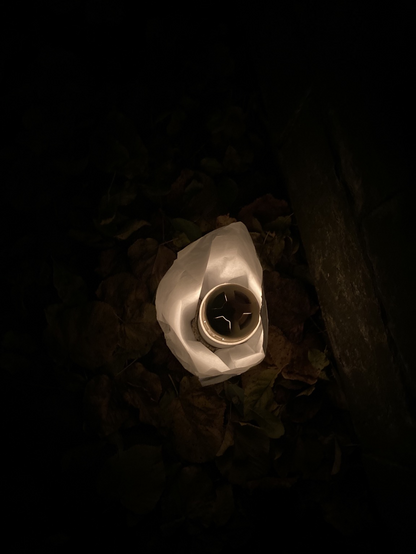 Honderden kaarsjes die het pad door het bos verlichten… wat een werk!