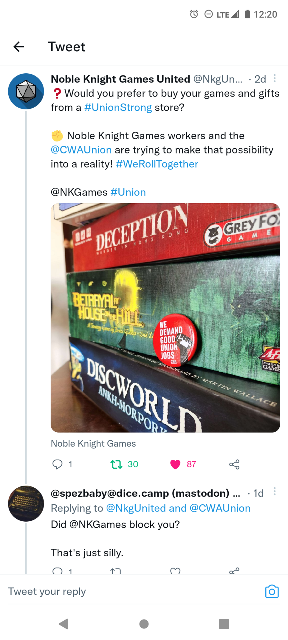 Props to #NobleKnightGames for voluntarily recognizing #NobleKnightGamesUnited, their employee #union under the #CWA.
