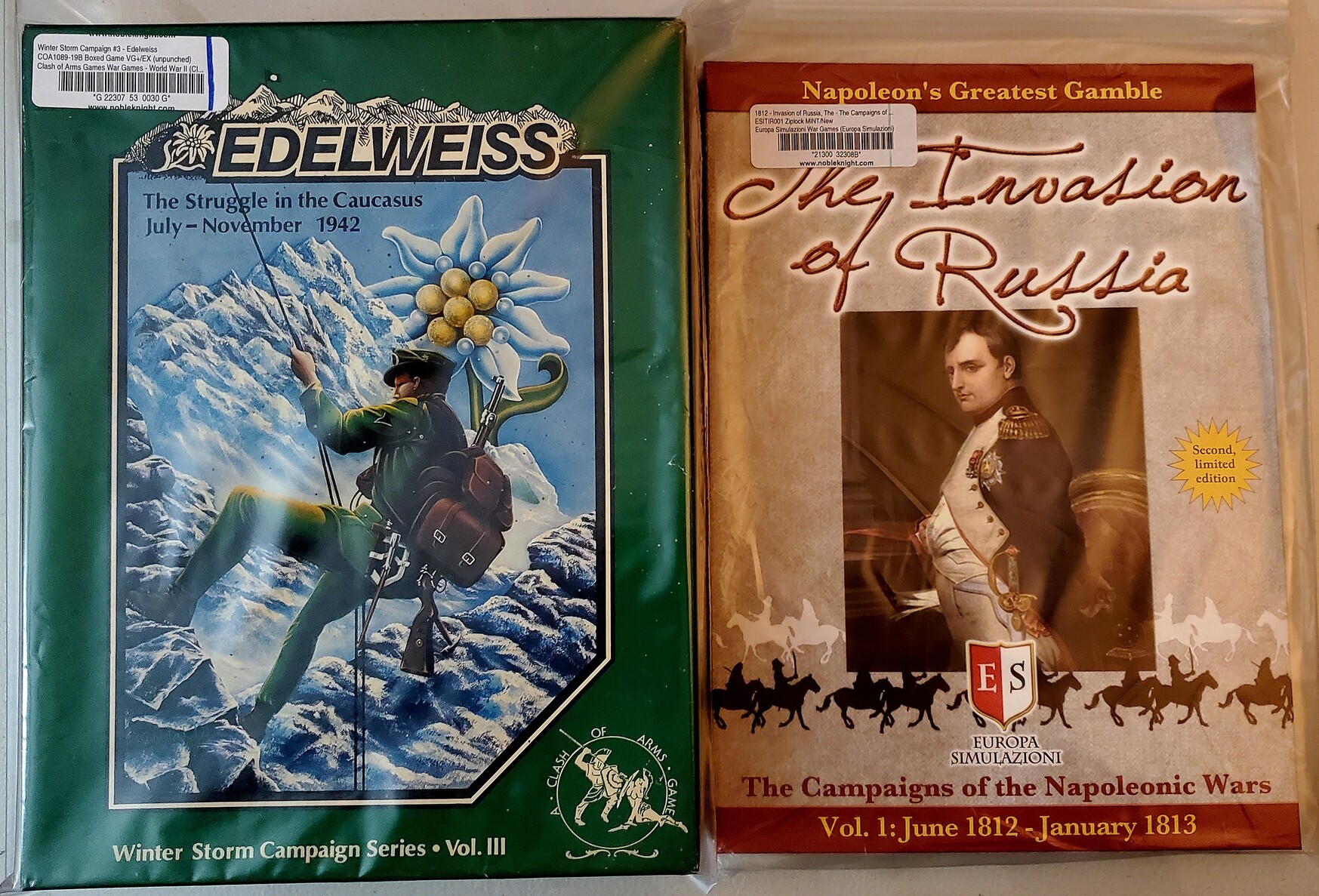 Mail call from the excellent humans at Noble Knight. Been eyeing Edelweiss for years. The 1812 game from Europa Simulazioni links up with their 1813 game that I've already got. #WeRollTogether #wargaming #HexesForever