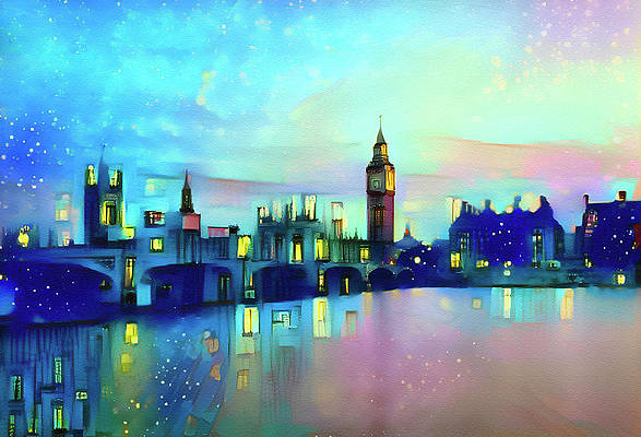 My family and I visited London and surround area several years ago. That trip is one of our favorite memories. This image of the London skyline at night always reminds me of the fun we had. A starry sky illuminates London's landmark buildings - Big Ben, Westminster Palace and the Westminster Bridge in the River Thames.
