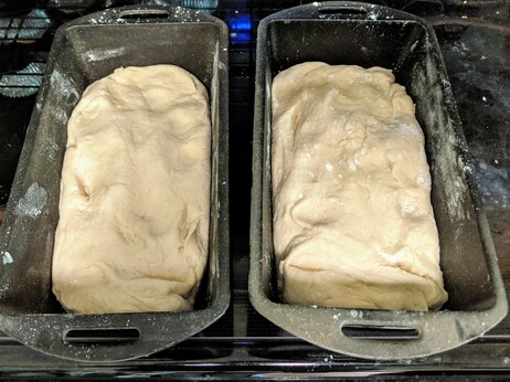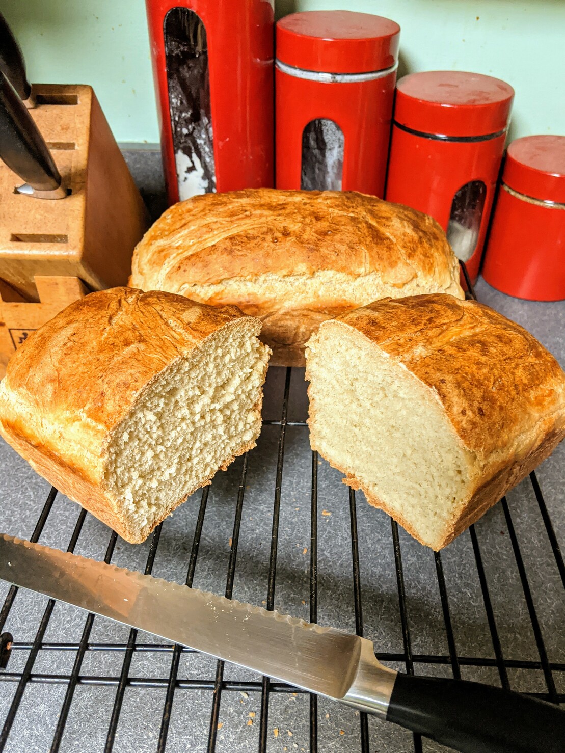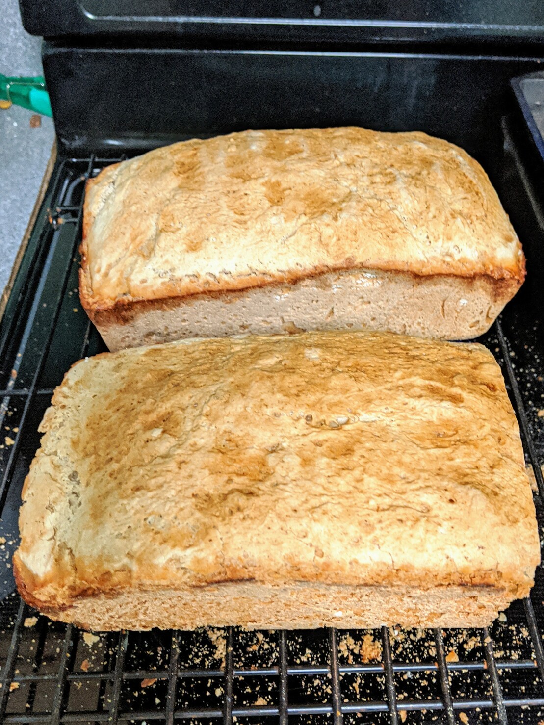 I baked these on Sunday and froze them for the coming weeks. We thawed a half for barbecue sandwiches (using soy curls) last night. These may be the best loaves I've baked yet. #wfpbno #vegan #veganbaking