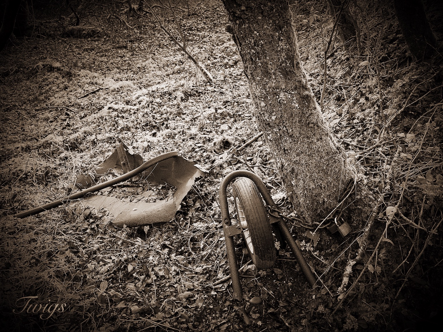 So many unanswered questions….why is the wheelbarrow padlocked to the tree? Why are there two padlocks? Who left it there to rust and decay? Did they have a mishap in the boggy marsh? I wonder what the combination is? The tyre still looks good, the moss is trying to devour it though, wonder how long it will take to disappear? The conundrum of the wheelbarrow in the woods! #wheelbarrows