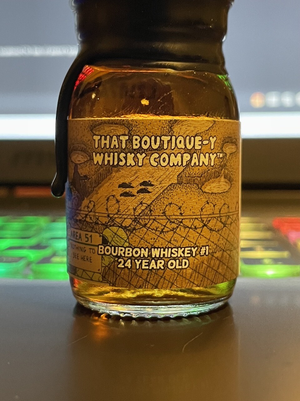 Whisky Advent day 21 is a 24-year-old private bourbon bottling from That Boutique-y Whiskey Company, "Batch #1", complete with Area 51 sign on the label (first real fancy label I've seen in one of these calendars.) 48% ABV.