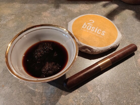 Dicke Suppe, "Small buds & leaves", ein Shu Pu'er von #White2Tea. Weil ich keine Teeutensilien dabei hab, wird der grandpa style getrunken.