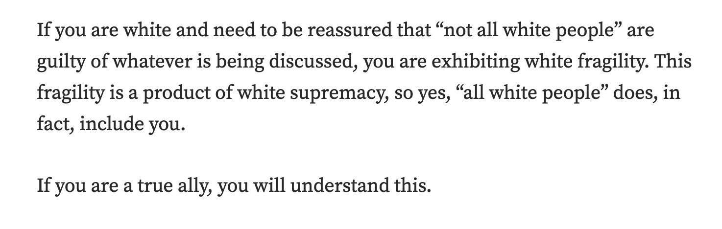 Anyone who says "not all white people" must be told about Robin DiAngelo's work.