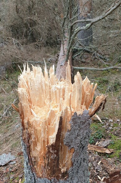 Went for a walk in the forest and was reminded that it is wild and slightly unsafe. The spruces have been weakened by the spruce bark beetle, and tonight a storm toppled yet another one over my favourite path. I took this picture while winds still howled in the dead and dying trees around me.