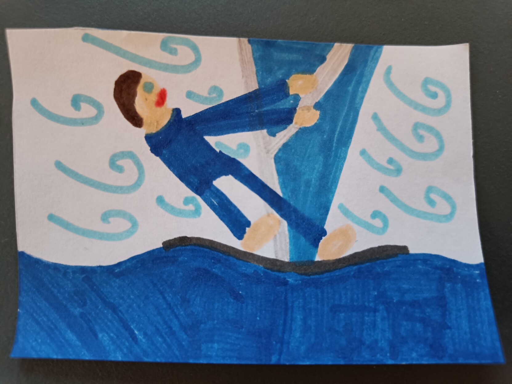 7 yo daughter made an awesome drawing of me windsurfing. I love it #windsurf