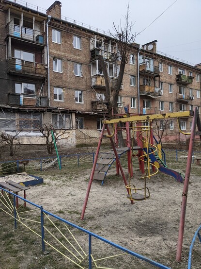 Es folgt ein Besuch in #Wyschhorod bei Kyiv, bei einem Angriff auf ein Wohnhaus kamen hier im November 7 Menschen ums Leben. Gemeindevertreter*innen wünschen sich Unterstützung auch für die kleinen, unbekannten Orte.