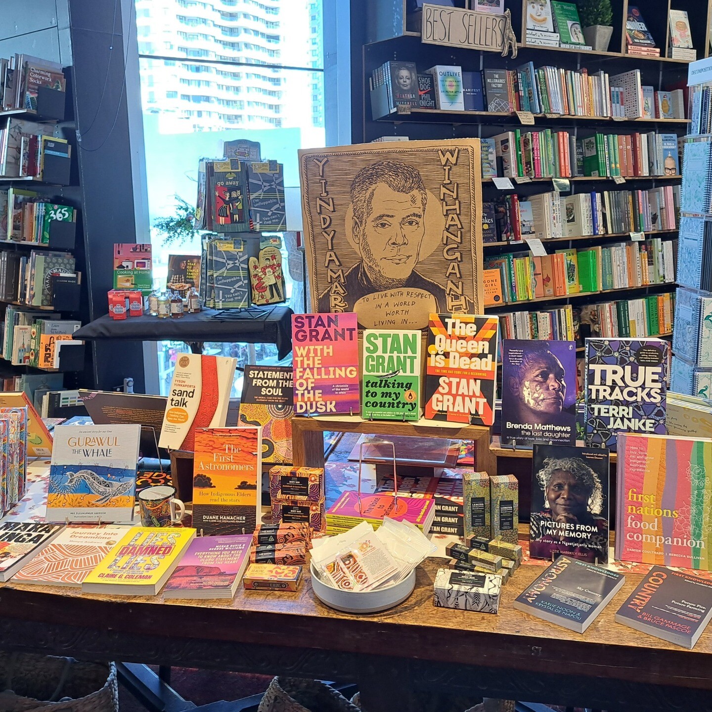 Wonderful display of #Indigenous #books at my local #HarryHartogs. The full meaning of the #Wiradjuri phrase "Yindyamarra Winhanganha" is "The wisdom of respectfully knowing how to live well in a world worth living in." 🖤💛❤️ #VoteYesAustralia