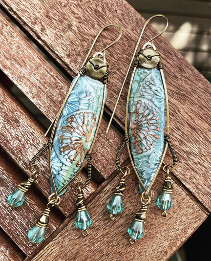 My favourite pair of earrings I’ve made this week! Polymer clay and wirework earrings in shades of blue and bronze. They’re very long at 10cm but what a gorgeous statement pair of earrings, eh?