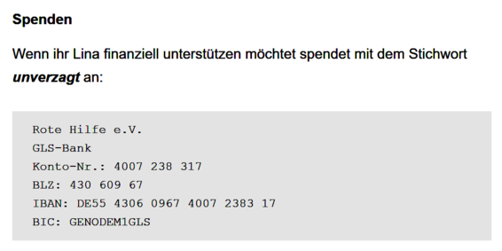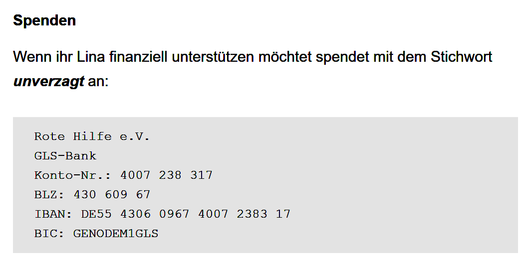 Wie ihr unterstützen könnt: freiheitfuerlina.noblogs.org/solidarity