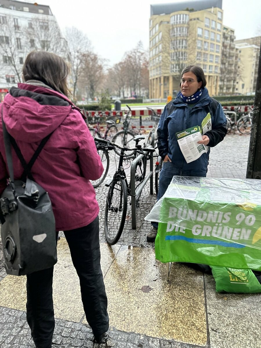 Ich selbst war auf dem Hohenzollernplatz dabei. Gespräche führten wir zur Verwaltungsreform, Wahlwiederholung und vielen anderen. Wir freuen uns am Interesse an Grüner Politik.