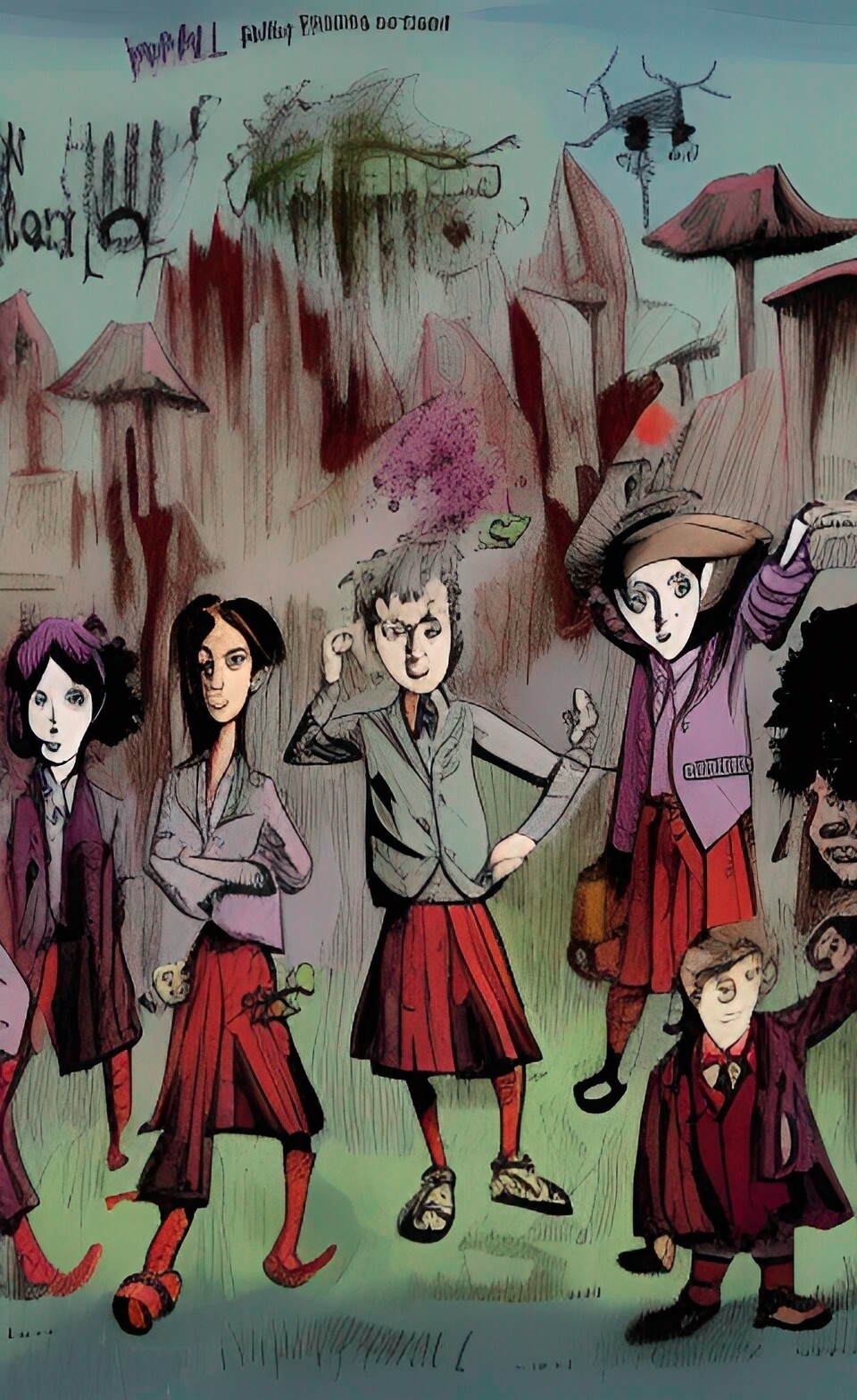 I happen to have the Wombo.ai Dream app installed on my phone, and haven’t used it very much, so I started there. That app heavily leans into models trained in different styles, one of which is “Abstract,” so it seemed like a good bet. For the first prompt, I supplied an input image, which I said should heavily influence the result. Avid fans of anime might guess from the result that the image was fan art from “Assassination Classroom,” which was also the text prompt. For the rest I supplied no starting image, using only text prompts to steer things. Unfortunately, I didn’t keep notes at the time, and worse, I foolishly didn’t “Finalize” any of the results, since I was just looking for samples to influence my daughter’s art on paper. So I don’t remember what words I used for the other three examples, my favorites of the eight I generated for her.