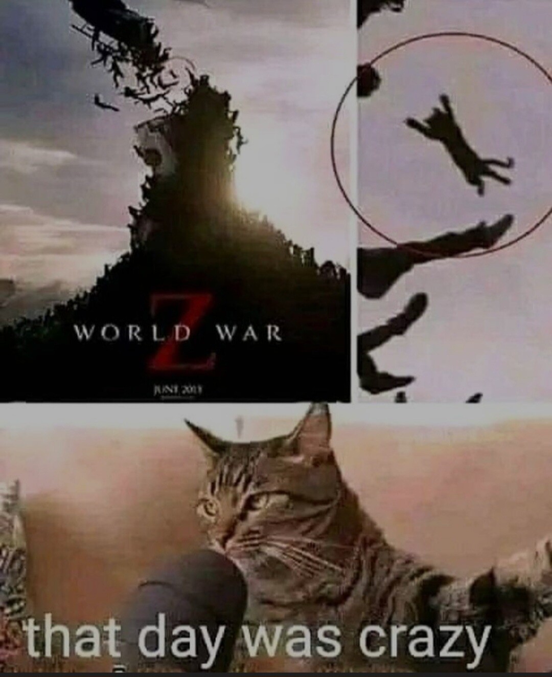 #MemesDaily #CatsOfMastodon #WorldWarZ #Laugh Once you see it, you'll never unsee it. 😊