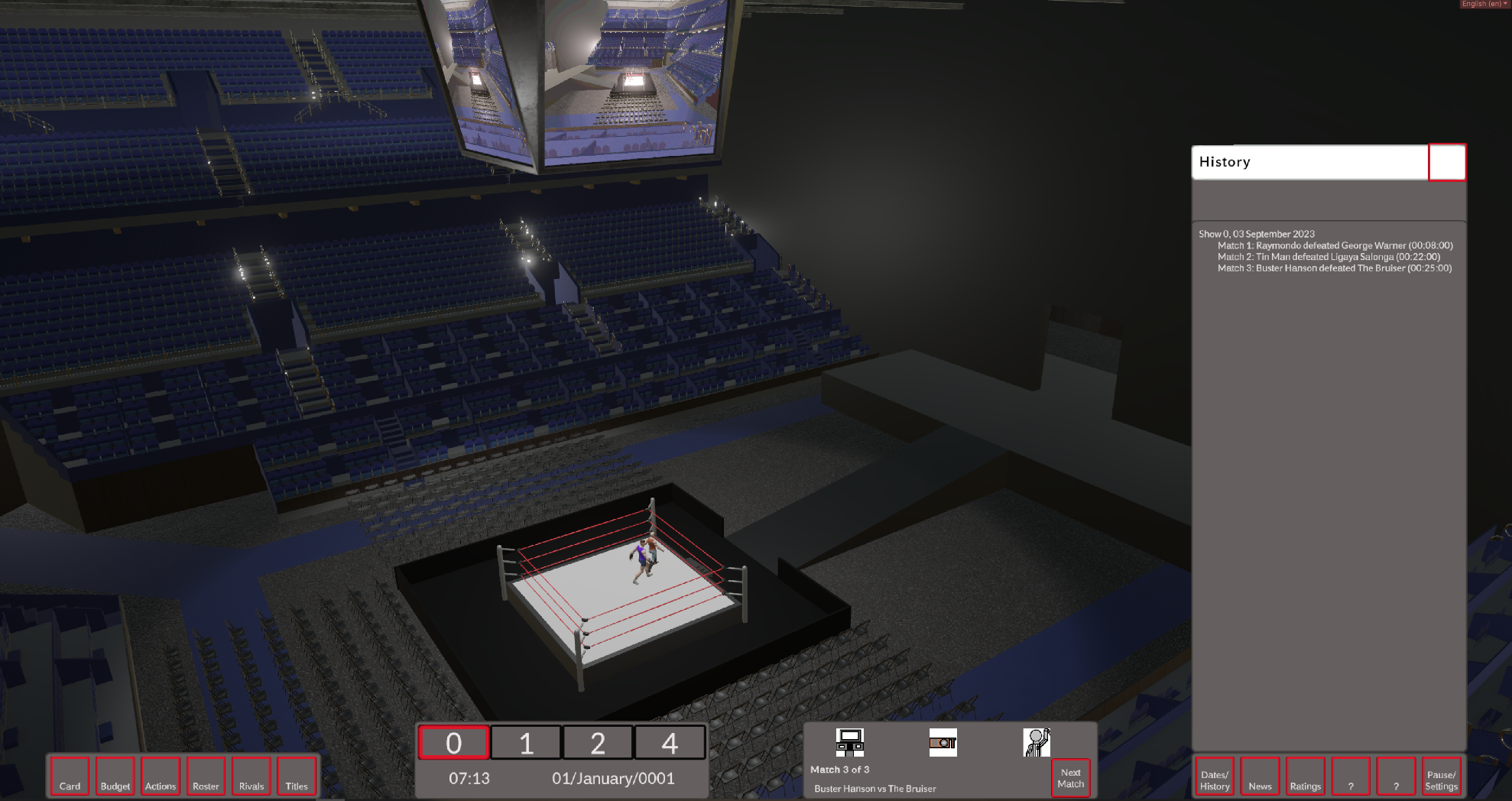 Inspired from watching AEW Dynamite, I just got UV magic working and have my own-built "titantron" screens in the game! :) It's looking like a wrestling game at last! :)