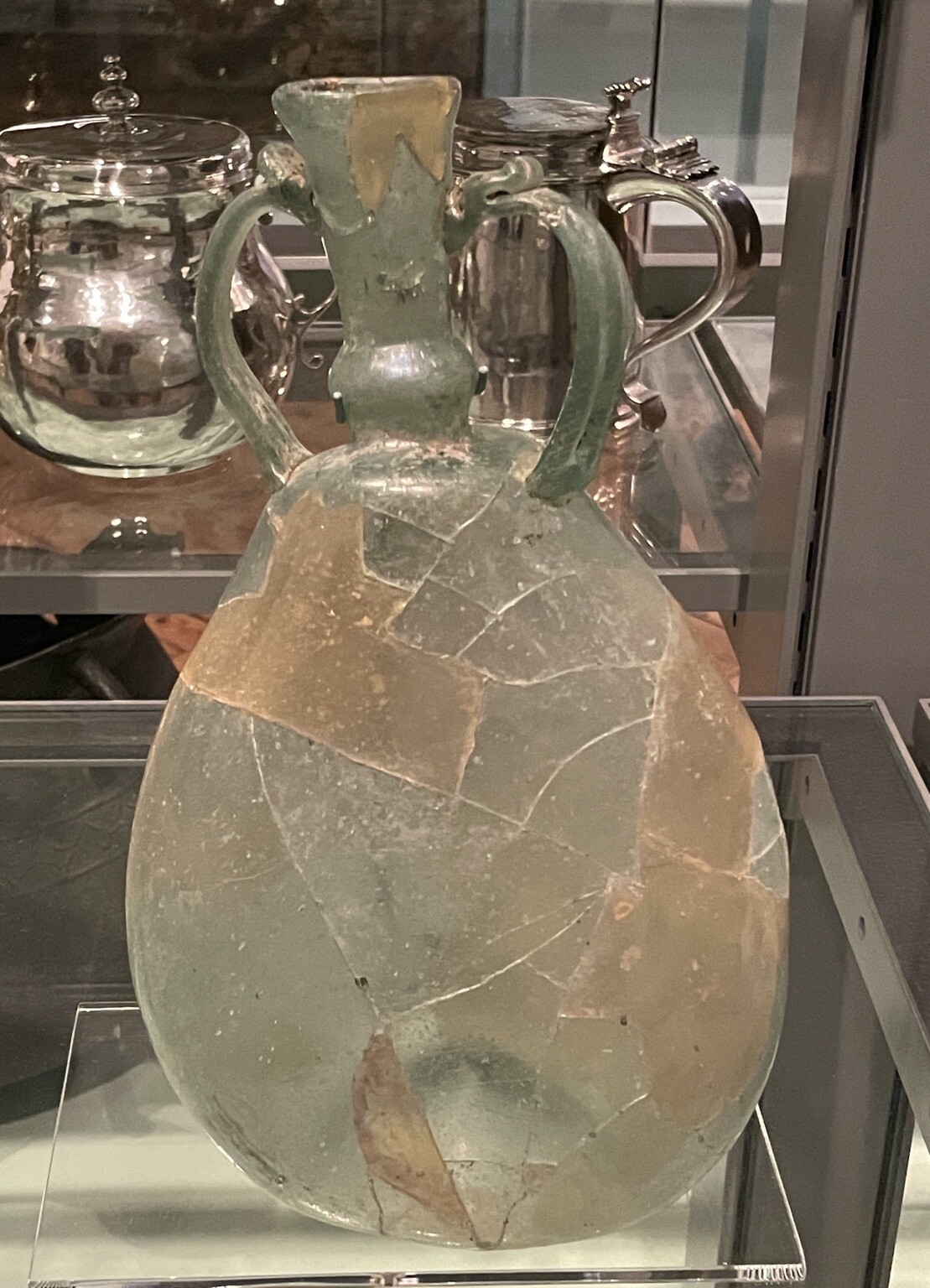 This unusual vessel from Dartington Hall @DartingtonTrust now on display @RAMMuseum Exeter is dated 1600-1700. Probably too late for the late 16th century occupants of the hall I’m researching to have held it. But you never know. #glass #writersresearch