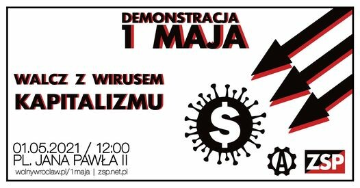 May 1st, International Labour Day, Wroclaw, demo "Fight against the virus of capitalism". We are meeting at 12.00 here: https://www.openstreetmap.org/#map=19/51.11117/17.02229 #LabourDay2021 #LaborDay2021 #1may #1maja #wrocław