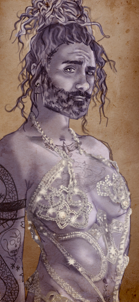 Ed in diamond and pearl lingerie … the art may not explicitly be #SteddyHands, but in my head Ed is absolutely dressed up for his boyfriends.