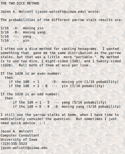 The d8 and d20 method generates the same odds as the venerable yarrow stalk method. #YiJing
