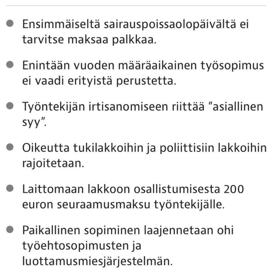 Tietenkään en ole nähnyt hallitusohjelmasta kuin jotain pieniä nostoja - mut kai noiden työolojen ja lakko-oikeuden heikentämiseksi nyt olisi syytä alkaa järjestellä YLEISLAKKOA? #yleislakko #hallitusohjelma
