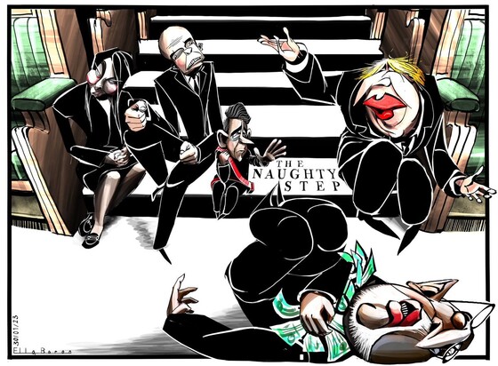 Ella Baron on #ToryParty #BorisJohnson #RishiSunak #MattHancock #ZahawiSacked - political cartoon gallery in London http://original-political-cartoon.com