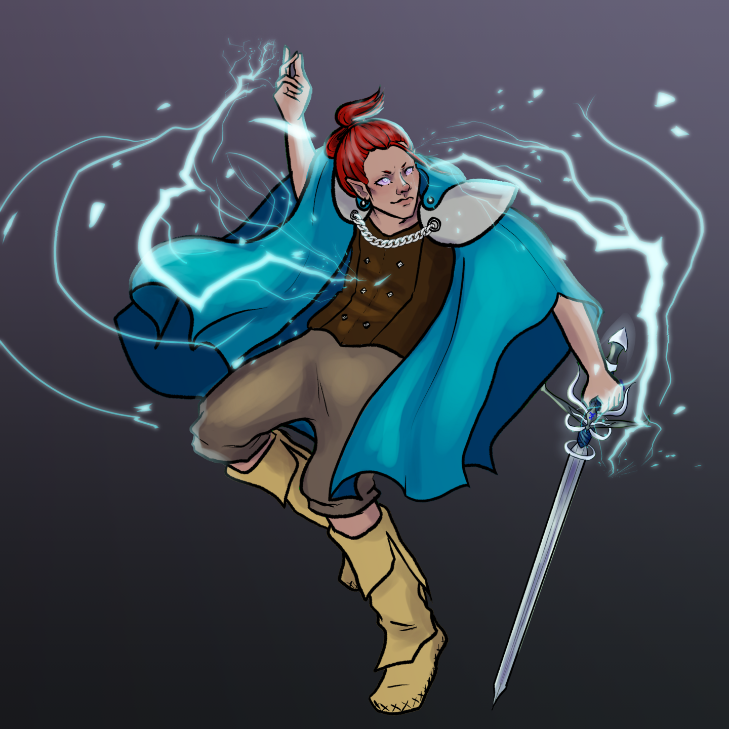 Decidí que quería jugar un hechicero elemental, que juntaba su facilidad innata para la magia con su alta destreza para crear armas mágicas poco ortodoxas. Me lo imaginé como un "alma libre", curioso y con afán de explorar y comerse el mundo. Empezábamos a nivel 3, así que le di su primer y único nivel de pícaro un poco por las habilidades y expertises y un poco por hacerlo más apropiado para el combate a melee y voilá. Su estrategia habitual era pegar a melee con el cantrip Booming Blade o lanzar hechizos de daño, así en general.