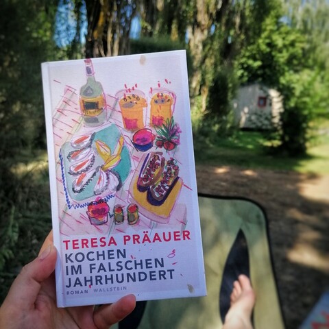 Ich lese Teresa Präauers „Kochen im falschen Jahrhundert“ – eine Art Versuchsaufbau über eine Einladung zum Essen. Ein funkelndes, scharfkantiges Vergnügen. Bin jetzt auf Seite 37 und habe gar keine Lust, aufzuhören. Warum auch?