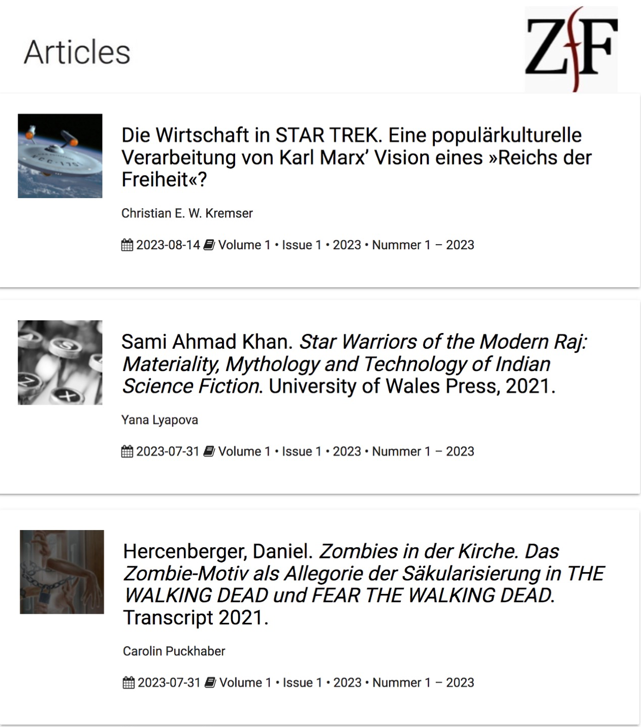 Three new articles published in #ZFF: Zeitschrift für Fantastikforschung. Check them out at: https://zff.openlibhums.org/issue/902/info/