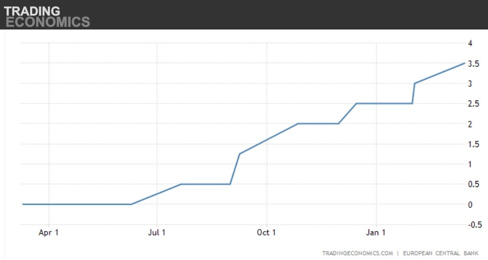 Aumento tassi BCE e rallentamento economia dell'Eurozona. L'economia dell'Eurozona ha subito un brusco rallentamento, come mostra un'indagine sulle imprese. Gli economisti avvertono di una possibile recessione in contrasto con le previsioni ottimistiche della BCE.