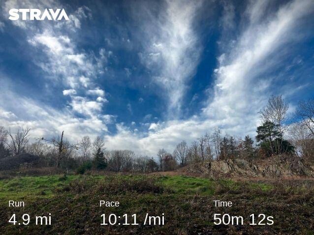 At the end of 5 weeks of Zone 2 training and I’m finally starting to feel like myself again. Ending the week on a high note always feels like a win. Traversed a few hills, stared at some amazing cloud formations, and got back before the rain set in.