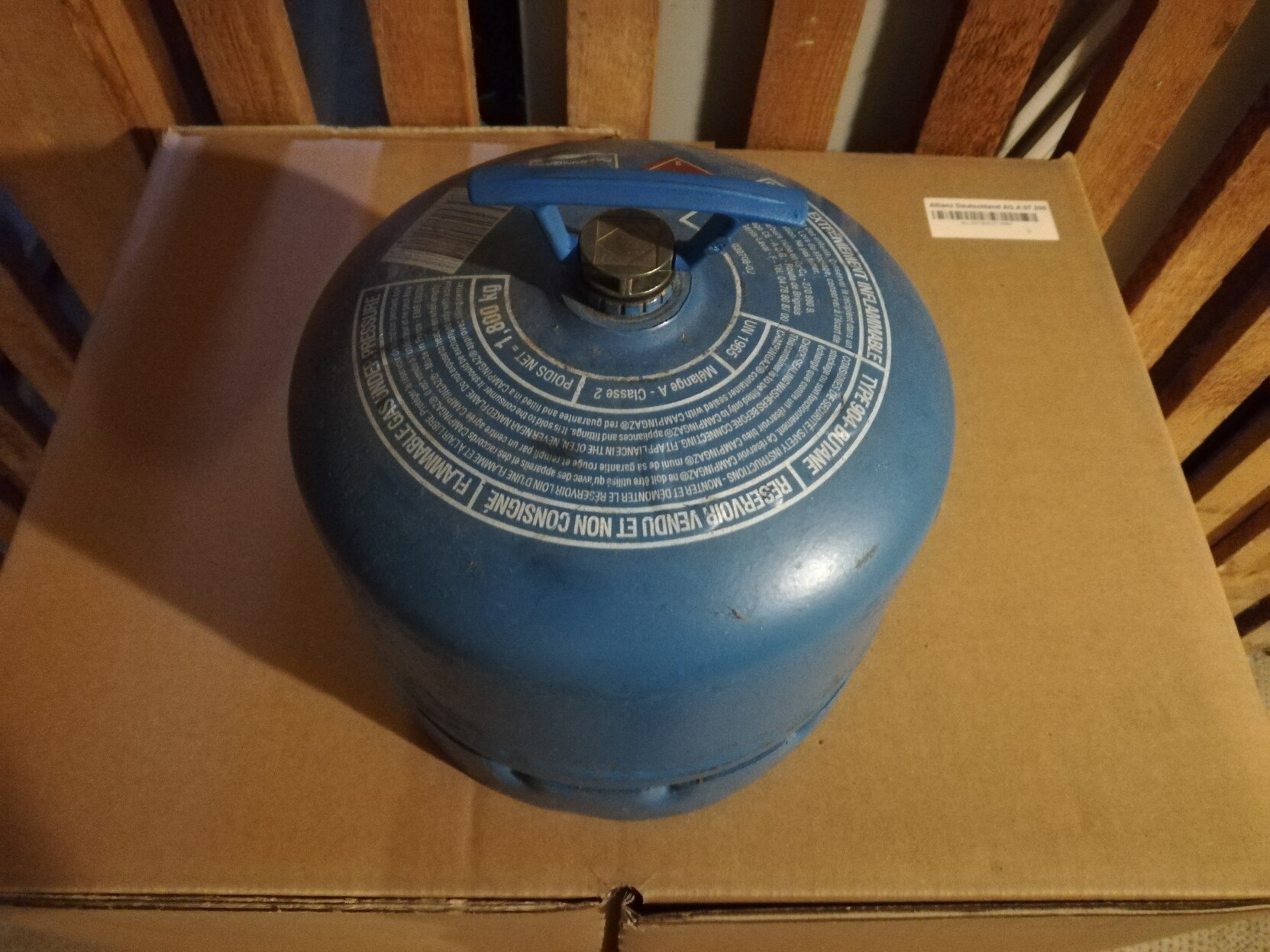 Ich habe zuhause noch eine von den mittelgroßen Gasflaschen von Campinggaz stehen. Bei ebay darf eins die nicht verkaufen, also habe ich sie bei nebenan. de eingestellt, aber offenbar gibt es in meiner Hood keine Buslebesitzer*innen. Also falls jemand so was braucht, für 30 Euro ist sie dein. Kosten regulär 70 bis 80 Euro und werden eh beim Händler ausgetauscht, wenn eine neue Füllung ansteht.