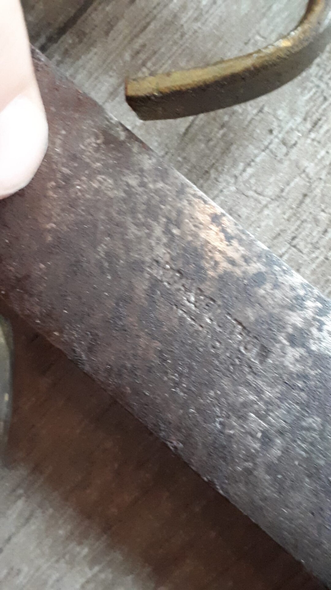 We puzzelen nog wat verder met de floret waar ik eerder over postte. Vandaag het zwaard opgehaald en even goed bekeken. Net onder de pommel zijn letters geetst. Ik kan ze (nog) niet lezen, maar ga een poging wagen vandaag. Hopelijk komen we weer een stapje verder met het ontdekken van de herkomst.