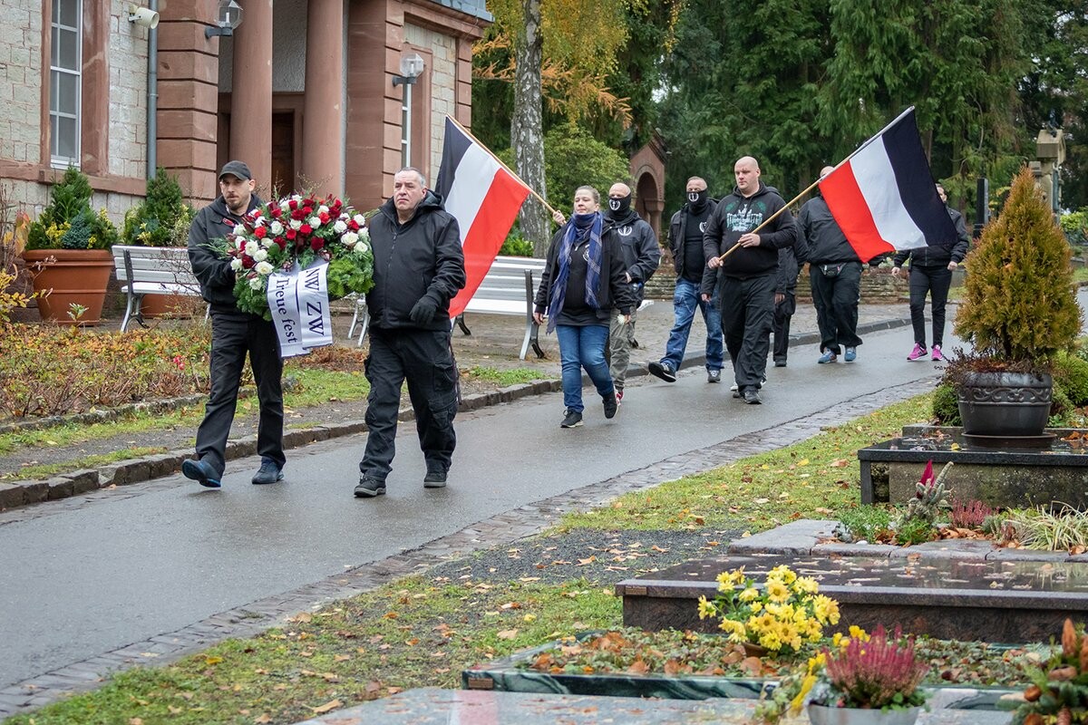 Wie in den Vorjahren hat sich die #Nazi-Kameradschaft Nationaler Widerstand #Zweibrücken am #Volkstrauertag am Hauptfriedhof versammelt, um im Anschluss an die öffentliche Gedenkveranstaltung der Stadt ihr sog. "Heldengedenken" auf dem Soldatenfriedhof abzuhalten. 1/7