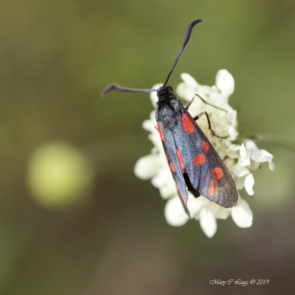 Six-spot Blue, Zygaena filipendulae on Cream Pincushions, Scabiosa ochroleuca Canon 5D MarkII Sigma 105 2.8 f/ 6.3 1/160 iso: 250 Milovice, Czech Republic August 6, 2019 #MothsMatter #Moths #Zygaenidae #lepidoptera #insects #invertebrates #macro